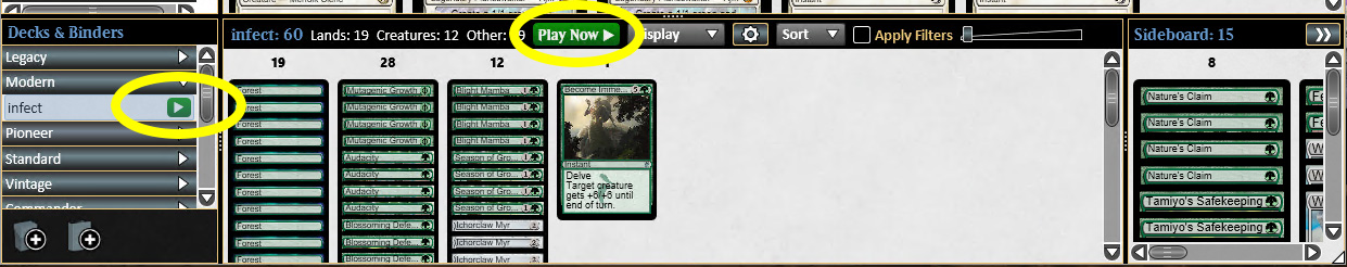 TIP: If 'Play Now' is greyed out, make sure your deck is legal for the chosen format