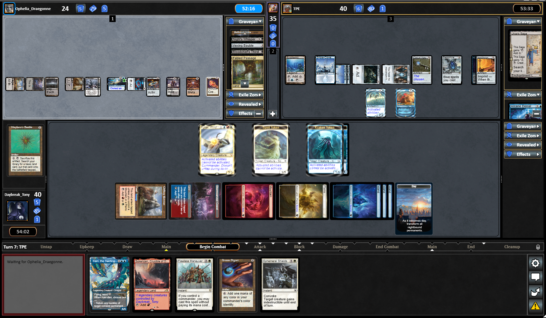 Also unlike the Duel Scene, the battlefield highlights for the player who currently has priority, not the player whose turn it is.