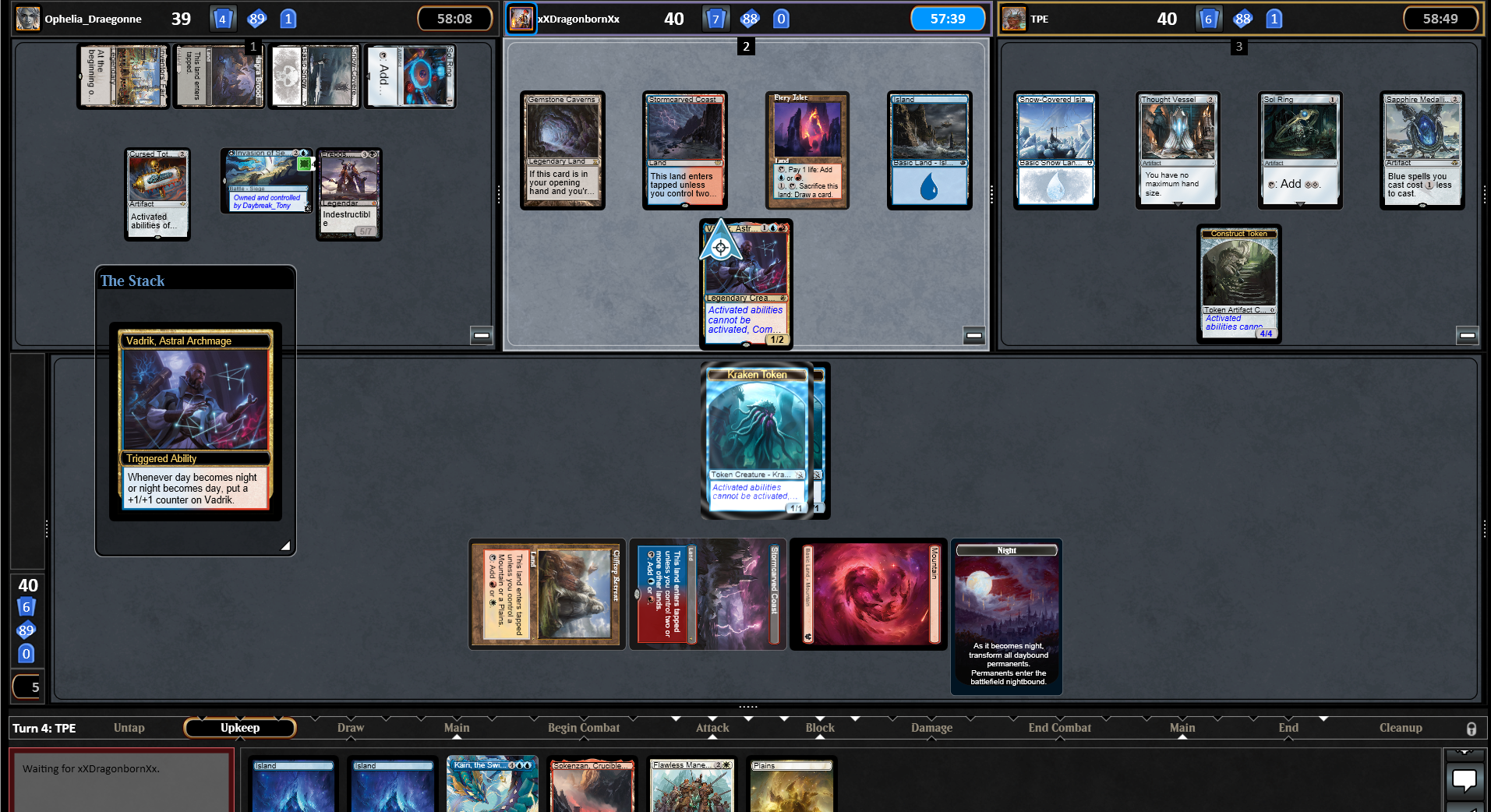 The Multiplayer Duel Scene looks and feels a bit different from the two-player game. This section will lay out the basics about the game's interface, not the basics of Magic.