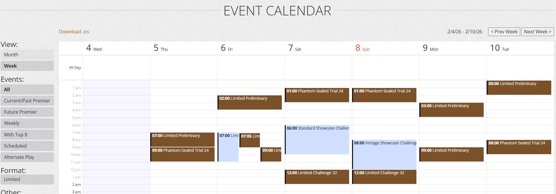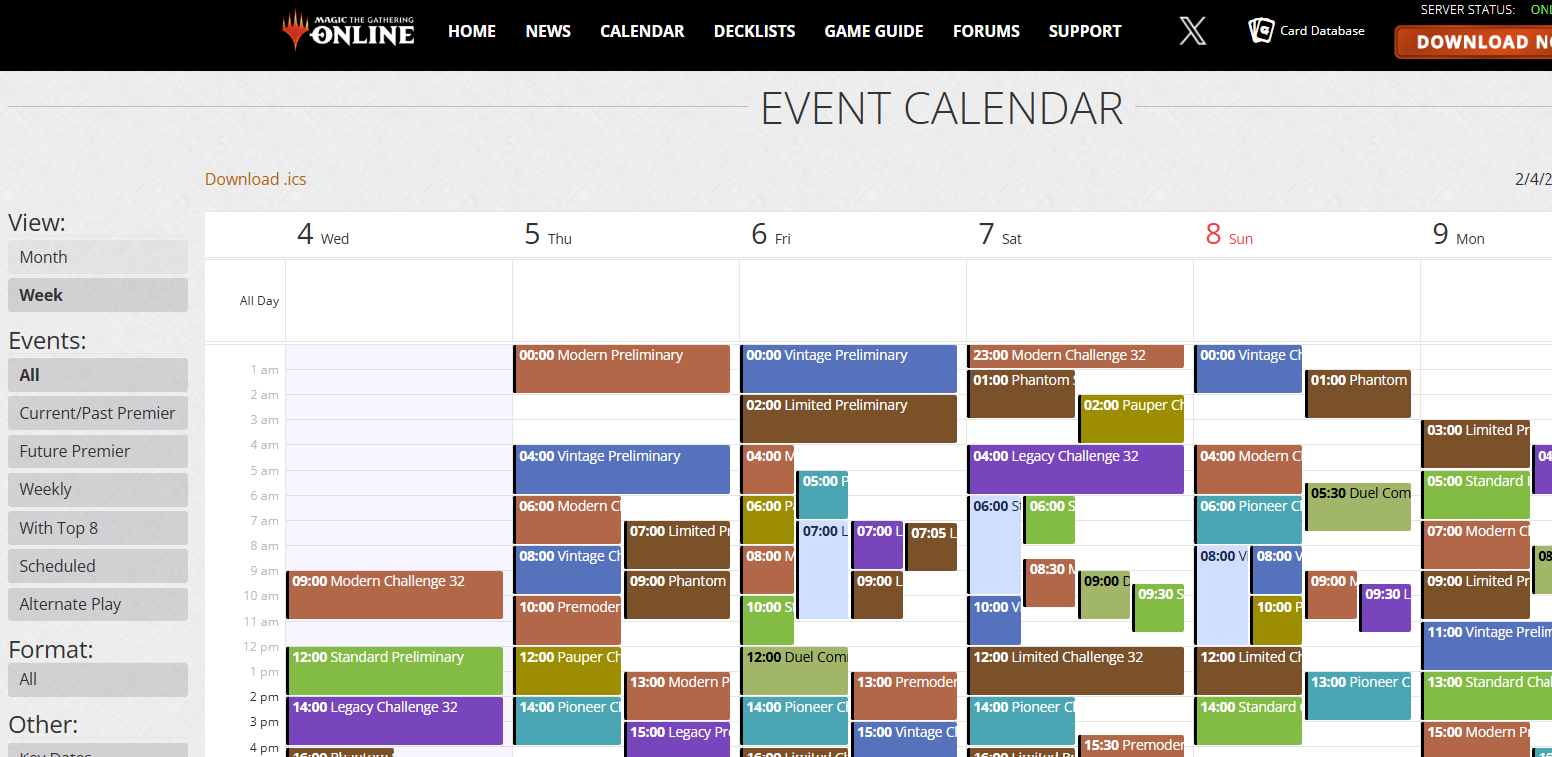 There are several ways to see the upcoming schedule of tournaments across many of Magic Online's Constructed and Limited formats:
