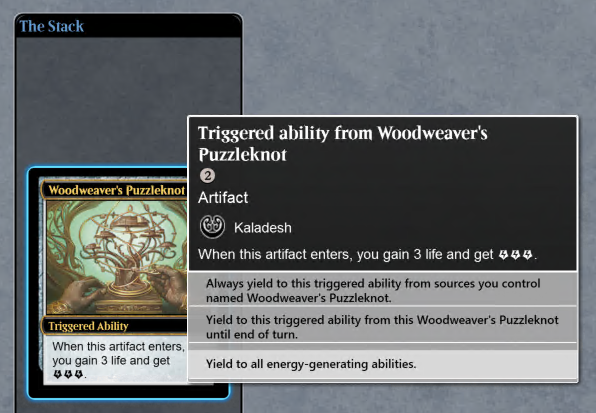To set up a yield or an automated decision, right-click an ability on the stack. This will open a menu.