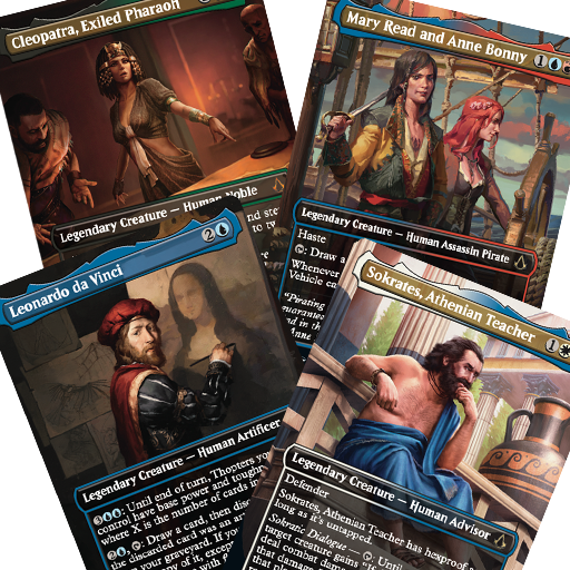 - Historical Figures Bundle - $20 USD for one foil copy each of 4 cards showcasing famous figures in a Borderless treatment.