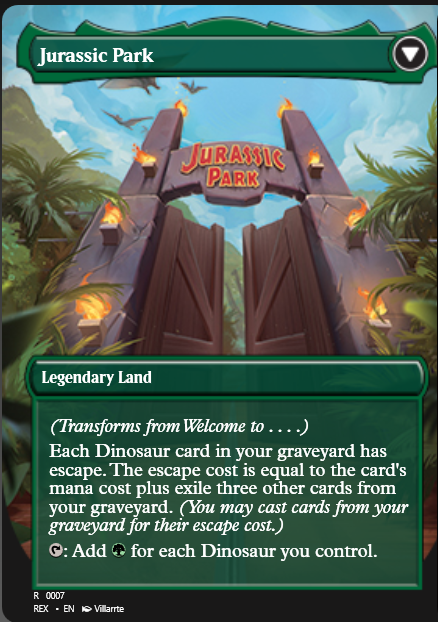 A special collaboration with one of the largest and best-known film franchises in history is on the horizon – the Jurassic World Bundle on MTGO! This digital box contains 20 brand-new card designs featuring dinosaurs, characters, and settings that have entertained millions for over 30 years. All of your favorites are here – the iconic Tyrannosaurus Rex, the massive Mosasaur, Ian Malcolm, Owen Grady (partnered with Blue), plus many more.