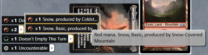 If it does matter, you can click the orange arrow to expand the selection – the game will display the exact source of each mana. Hovering the cursor over that expansion will highlight the source if it’s still on the battlefield to keep your mana straight.
