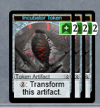 Another mechanic in this set is Incubate. If you control multiple Incubator tokens with the same number of counters, ensure you animate the correct one without summoning sickness when preparing to attack. Because they are not yet creatures, they don’t have the swirl naturally. (If you have used Blinkmoth Nexus, Mutavault, or other permanents that animate in the past, this will be familiar territory).